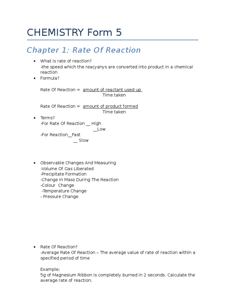 Chemistry form 5 chapter 5 note. The structure of the atom. Please fill this form, we will try to respond as soon as possible. 2 topic 1 energetics energy changes accompany both physical and chemical changes. Text of chemistry form 5 chapter 1. Please fill this form, we will try to respond as soon as possible. Share & embed chemistry chapter 1 form 5. Chemistry form 5 chapter 1 rate of reaction. Download chemistry chapter 1 form 5 . Please familiarise with all these experiments from form 5 chemistry chapter 1: Essay on chapter 5 chemistry notes. Short notes based on the malaysian spm form 5 chemistry syllabus. Manganese(iv) oxide(mno2), iron(iii) oxide (fe2o3), silver (ag) haber process (manufacture ammonia).