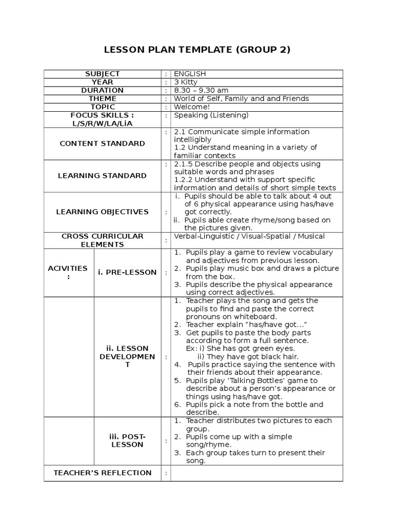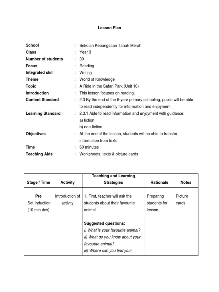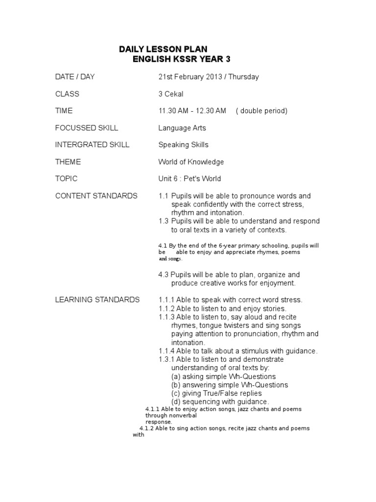 English Year 3 Kssr Daily Lesson Plan / Language Arts Lesson Plan For Year 3 Kssr Lesson Plan Neuropsychological Assessment / Search for english lesson plan.